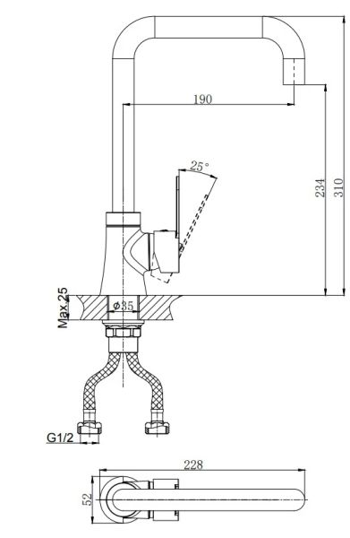 • Высота смесителя: