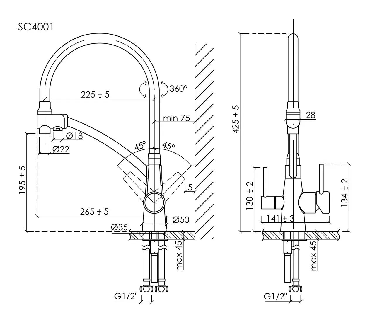 Смеситель для кухни SANCOS Eri с гибким изливом и возможностью подключения фильтра для воды, цвет матовый черный, арт. SC4001MBС возможностью регулировки температуры водыАэратор, гибкая подводка, ключ и крепления для монтажа, ключ для обслуживания аэратора