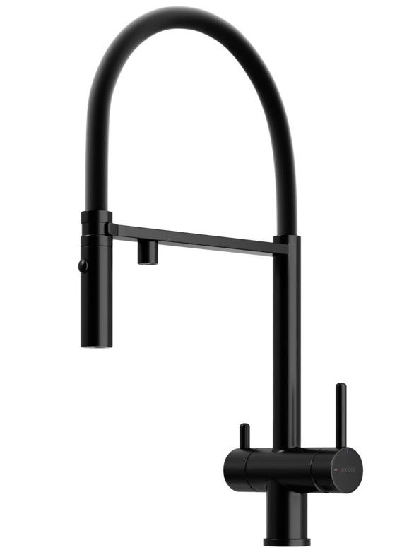 Смеситель для кухни SANCOS Imola с гибким изливом и возможностью подключения фильтра для воды, цвет матовый черный, арт. SC4010MBФункция "Холодный старт" - при включении смесителя активируется холодной поток, для экономии горячей водыАэратор, гибкая подводка, ключ и крепления для монтажа