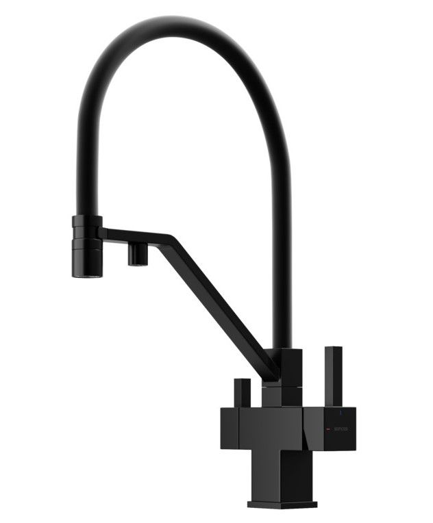 Смеситель для кухни SANCOS Loro с гибким изливом и возможностью подключения фильтра для воды, цвет матовый черный, арт. SC4007MBФункция "Холодный старт" - при включении смесителя активируется холодной поток, для экономии горячей водыАэратор, гибкая подводка, ключ и крепления для монтажа