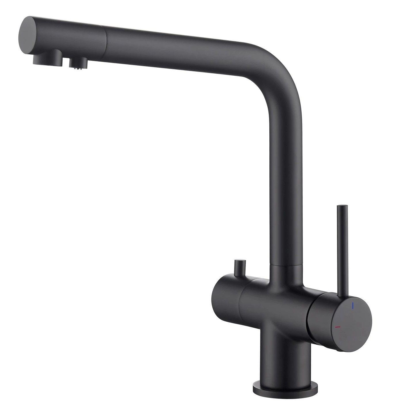 Черная сантехника становится все более популярной из-за способности расставлять акценты. Смеситель Timo Saona 2396 с системой подключения фильтрованной воды относится к премиальному сегменту, предназначен для монтажа на кухонную мойку или столешницу. Высокий излив подходит для моек с двумя чашами, а также позволяет справляться с мытьем габаритной посуды. Удобное (вертикальное) расположение рычага смесителя в крайнем положении "холодный старт", позволяет не задевать ручкой за стеновые панели, фартук, предметы, которые находятся за смесителем. Картридж с функцией "холодный старт" работает в диапозоне 90 градусов, рычаг установленный в исходное положение (вертикально) при открытии подает только холодную воду, а не 50% холодной воды плюс 50% горячей, позволяя экономить до 30% расход горячей воды. В нижней части смесителя установлены 2 трубки с адаптером (можно подключиться к любой из них) для соединения с трубкой фильтра. Подача фильтрованной воды осуществляется поворотом ручки дивертора, расположенной слева на корпусе смесителя (от себя или на себя) в зависимости от того какую из трубок вы выбрали для подключения с трубкой фильтра. Вставьте заглушку (входит в комплект) до упора в свободную трубку. Положение 12-00 дивертор выключен. Сложностей монтажа не возникает при установке смесителя опытным сантехником. Внимательно изучите инструкцию по монтажу и эксплуатации. Черная сантехника требует бережного ухода.