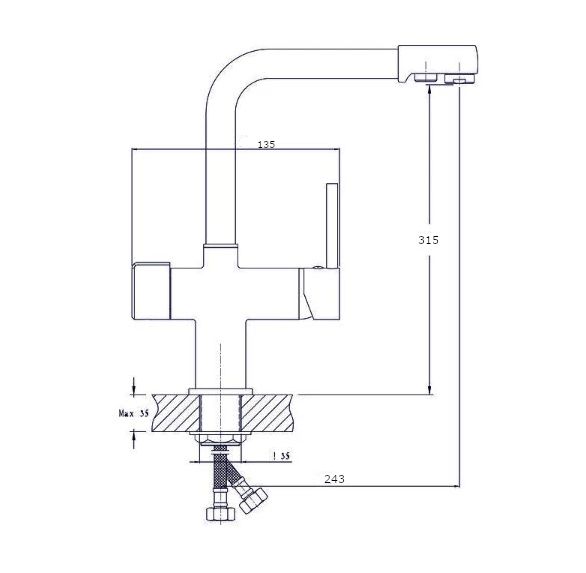 Смеситель для кухни с подключением к фильтру с питьевой водой RUSH арт. MS9035-33 изготовлен из нержавеющей стали и имеет рычажное управление.В смеситель установлен картридж D-35 с керамическими пластинами. Излив поворотный, 240 мм. Высота излива до аэратора 315 мм. Аэратор изготовлен из пластика с нержавеющим корпусом.В комплекте кран-букса с керамическими пластинами (для крана с питьевой водой), гибкая подводка с латунными гайками 35 см - 2шт, универсальная присоединительная группа, фум-лента, индивидуальный пакет, паспорт, гарантийный талон.