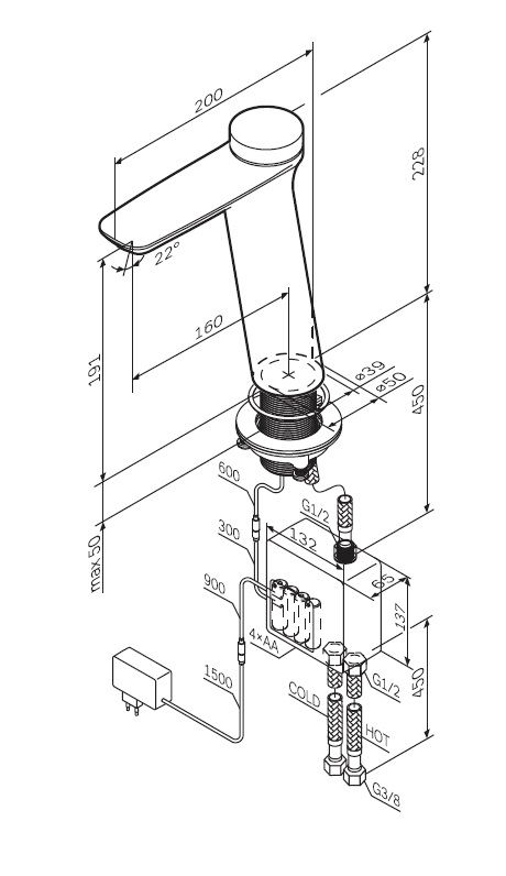 • Высота смесителя: