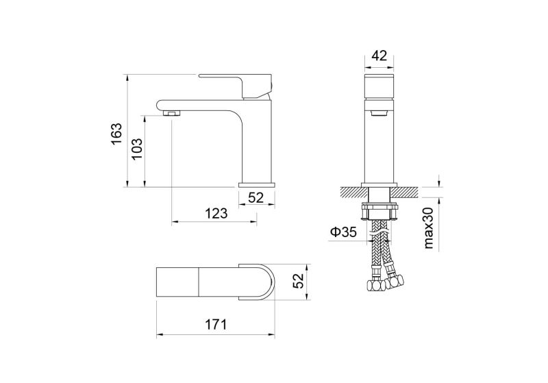 • Цельный корпус смесителя снижает вероятность протечек