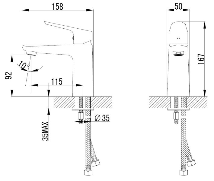• Высота смесителя:
