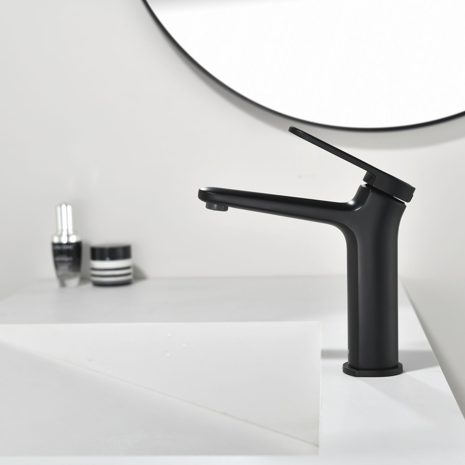 Смеситель для раковины датского производителя Black&White черного матового цвета. Материал корпуса – сантехническая латунь, безопасный для здоровья и ресурсный сплав, с порошковой окраской. Управление потоками воды и настройка температуры осуществляется с помощью керамического картриджа.Важным функциональным и эстетическим решением стоит отметить возвышение излива на 10 градусов  и ручки управления на 25 градусов относительно плоскости– это создает стремительные линии, а также минимизирует количество подтеков на корпусе когда Вы моете руки .