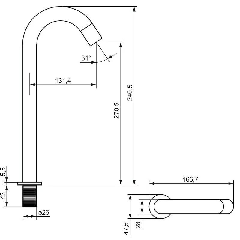 - Высота смесителя:27