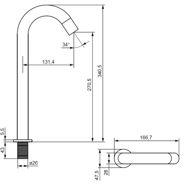 - Длина излива, см:13
