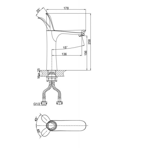 В комплекте поставки:Смеситель для раковиныСмесители немецкого бренда "DQ" производятся из латуни класса «А», что соответствует стандартам латуни HPB59-1, в РФ марка ЛЦ40С (ГОСТ 15527-2004) Толщина стенок смесителей «DQ» составляет 2,5 – 3,5 мм, Картридж D-35 мм. с высокопрочными пластинами из минерала Корунд (Al?O?) оксида алюминия. Низкий уровень шума: 17-19 дБ (сопоставим с шелестом листвы). Количество циклов открытия/закрытия - 500 000 Изделие тестируются под давлением воды и воздуха от 3 Атм до 10 Атм, на работоспособность комплектующих и качества сборки в соответствие стандартам. Ручка - джойстик с лепестком под пальцы. Высота смесителя: 258 мм. Длина излива: 178 мм. Пластиковый аэратор установлен под углом для комфортной эксплуатации, уменьшает расход воды. Креплление: Гайка с фиксирующими винтами Гибкая подводка на 1/2" - 40см. Высокое качество по доступной цене. Изделие имеет сертификат соответствия ГОСТ