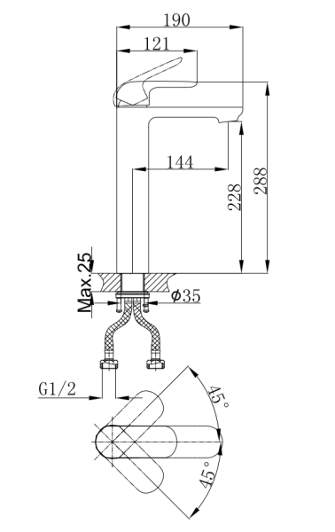 - Гибкая подводка 40 см идёт в комплекте для быстрой установки.
