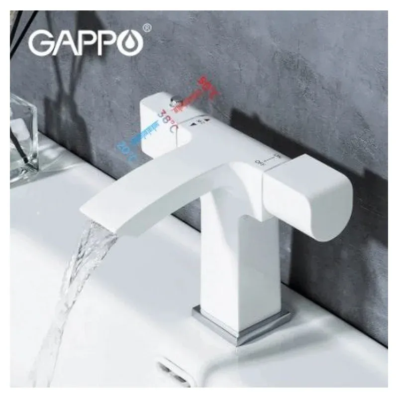 Смеситель для умывальника Gappo G1007-50 с термостатом. Материал изготовления - латунь с глянцевым покрытием, устойчивым к истиранию и механическим воздействиям. Термостатический смеситель дает возможность установить комфортную для вас температуру воды и зафиксировать ее (фиксация на 38 градусов). Цвет - белый.