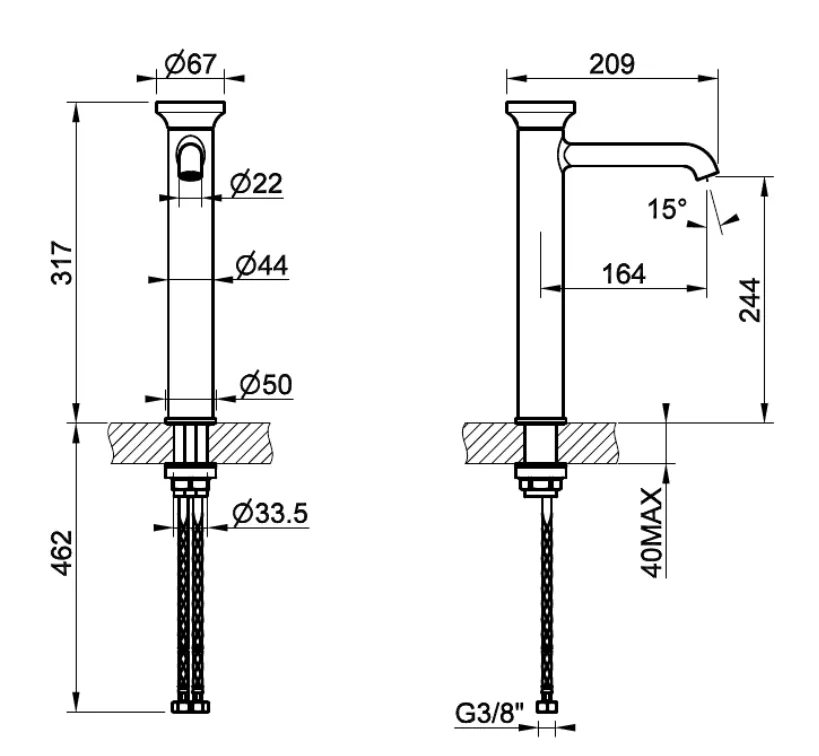 - Высота смесителя:31.7