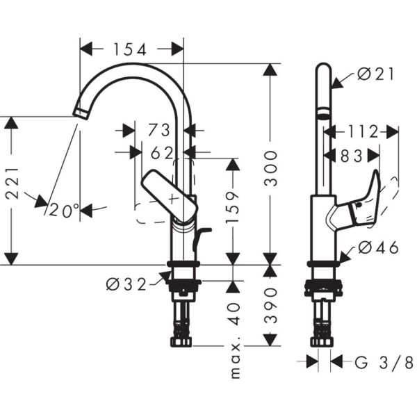 Смеситель для раковины Hansgrohe Logis 71130670 Черный матовыйкомфортзона 210- проекция: 154 мм- высота излива: 221 мм- вариант ручки: штифтовая ручка- диапазон поворота 120°- тип струи: обычная- максимальный расход при 3 бар: 5 л/мин- керамический картридж- ограничение температуры регулируется- подходит для проточных водонагревателей- сливной гарнитур G 1¼- набор отходов материала: синтетика- тип соединения: соединение G ?- присоединительный размер: DN15- положение ручки сбоку: нижняя сторона у основания корпуса (не подходит для умывальников)- таксономия ЕС: макс. 6 л/мин - существенный вклад (SC)