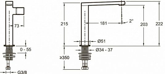 • Высота смесителя: