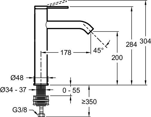 - Высота излива: 20 см