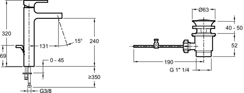 Смеситель для раковины Jacob Delafon STRAYT E37329-CP высокий.Вес: 4.1кг