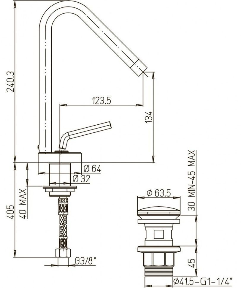 • Высота смесителя: