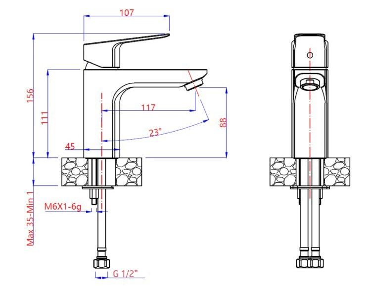 - Высота смесителя:15.6