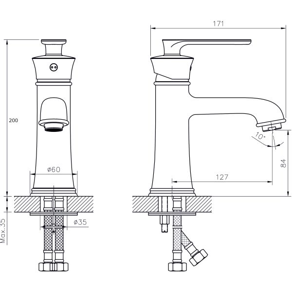 Смеситель для раковины RUSH арт. FLG0835-1 с металлической ручкой из коллекции Flores изготовлен из высококачественной латуни и имеет рычажное управление.В смеситель установлен картридж D-35 с керамическими пластинами. Высота смесителя 199 мм. Излив литой, неповоротный, 127 мм. Высота излива до аэратора 84 мм. Аэратор изготовлен из пластика с нержавеющим корпусом, угол наклона аэратора- 10 гр. В комплекте гибкая подводка с латунными гайками 45 см - 2шт, универсальная присоединительная группа для установки на горизонтальную поверхность, фум-лента, индивидуальный пакет, паспорт, гарантийный талон.