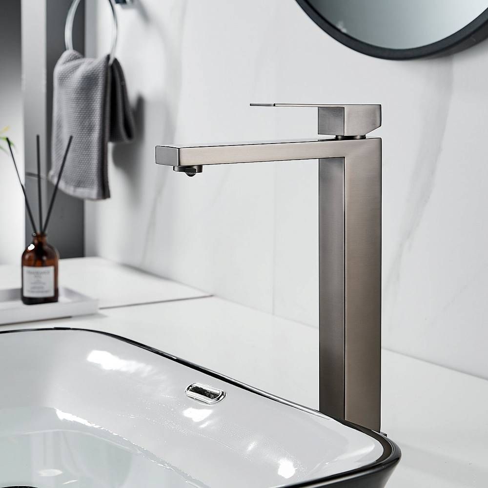 Смеситель для раковины Shevanik S7011T, оружейная сталь.Стилистика дизайна: Современный cтиль.Монтаж: на столешницу.Излив: традиционный, фиксированный.Подводка: гибкая, 1/2" .Материал: нержавеющая сталь.