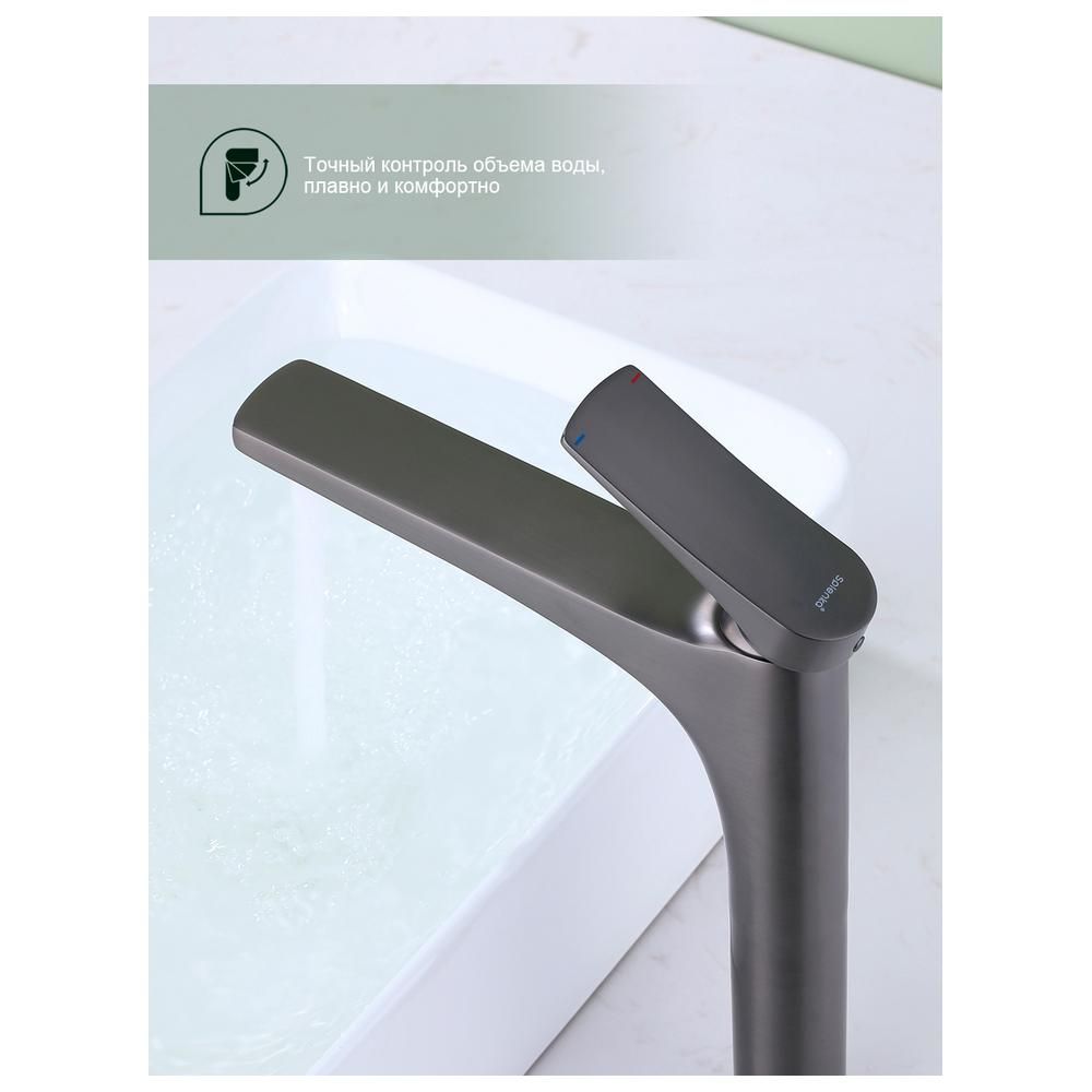 Смеситель для раковины высокий Splenka S54.15.09, графит — это идеальное сочетание современного минималистичного дизайна и высокого качества. Изготовленный из латуни, этот высокий кран для умывальника обеспечивает долговечность и надёжность в использовании, а также устойчивость к механическим повреждениям. Механизм смесителя для раковины основан на керамическом картридже с рычажным управлением, что гарантирует лёгкость и точность регулировки температуры и напора воды. Его минималистичный дизайн станет настоящим украшением вашей ванной комнаты, гармонично вписываясь в любой интерьер благодаря лаконичным формам и элегантным линиям.