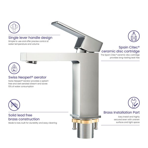 Смеситель Timo Selene 2061/00F chrome - однорычажная модель, предназначенная для установки на раковину. Эти сантехнические изделия по своим параметрам и дизайну справедливо считаются одними из лучших! В смесителях рычажного типа подача воды и регулировка напора осуществляется перемещением рычага в вертикальной плоскости. Если же требуется отрегулировать еще и температуру жидкости, то этого добиваются смещением ручки вправо или влево. Керамический картридж обеспечивает плавность хода рукоятки и точность смешивания потока воды. Благодаря плотно притертым друг к другу керамическим пластинам позволяет полностью исключить протечку при закрытом кране. Излив оборудован пластиковым разборным аэратором. Он создает насыщенную воздухом мягкую прямую струю воды, что заметно снижает уровень шума, и уменьшает расход воды. Смеситель изготовлен из качественной латуни и имеет стойкое хромированное покрытие, которое обеспечивает глянцевый блеск изделия, легко чистится от загрязнений и известкового налета. Покрытие наносится методом гальванизации, из-за чего оно становится устойчиво к царапинам и сохраняет гладкость и зеркальный блеск на весь срок эксплуатации.