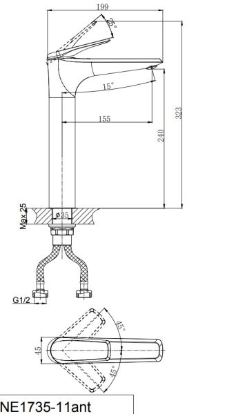 Смеситель для раковины RUSH арт. NE1735-11brоnze с металлической ручкой из коллекции Nevis изготовлен из высококачественной латуни и имеет рычажное управление.В смеситель установлен картридж D-35 с керамическими пластинами. Высота смесителя 323 мм. Излив литой неповоротный 199 мм. Высота излива до аэратора 240 мм. Аэратор изготовлен из пластика с нержавеющим корпусом, угол наклона - 15 гр. В комплекте универсальная присоединительная группа для установки на горизонтальную поверхность, гибкая подводка с латунными гайками 40 см - 2шт, фум-лента, индивидуальный пакет, паспорт, гарантийный талон.