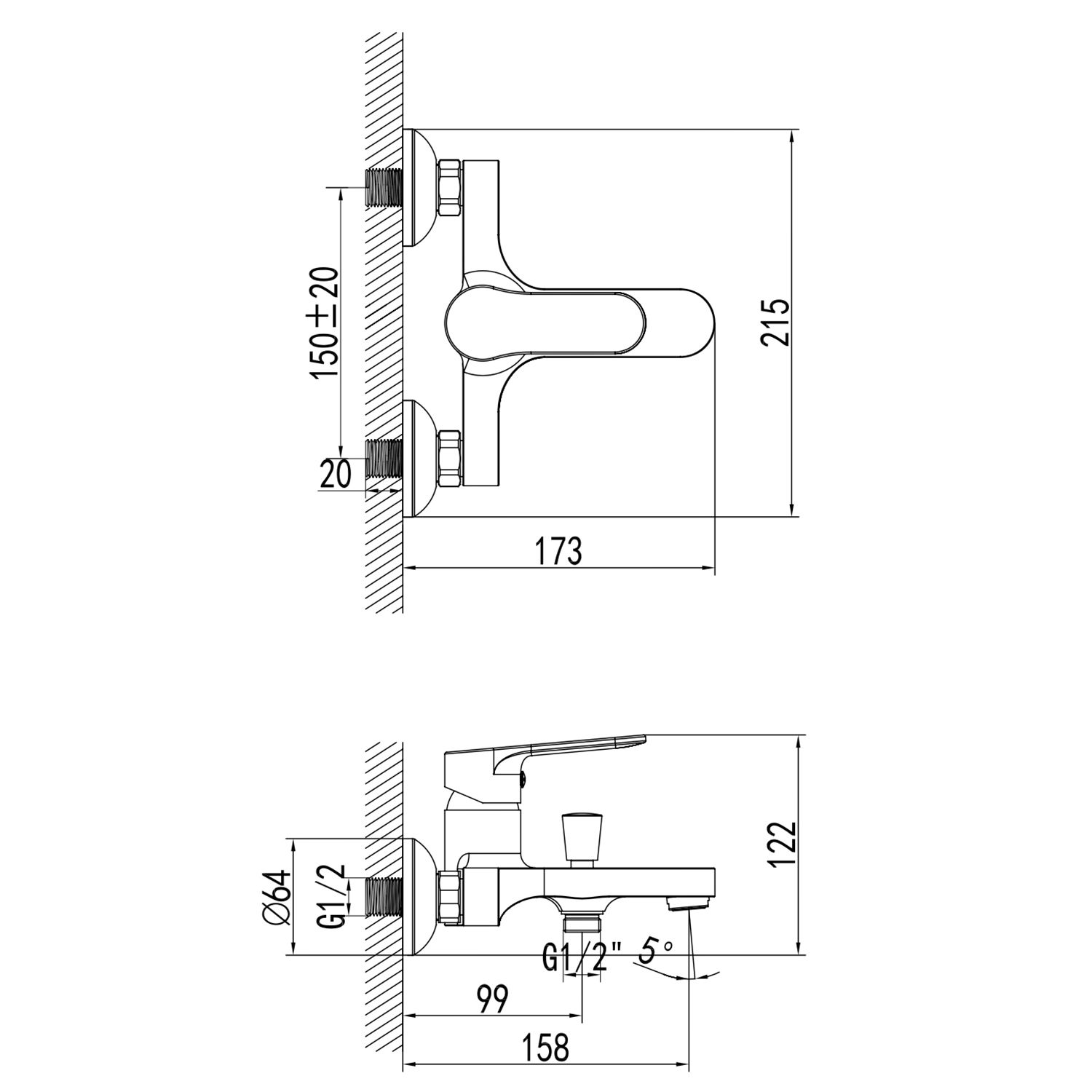 - Вращение излива фиксированный