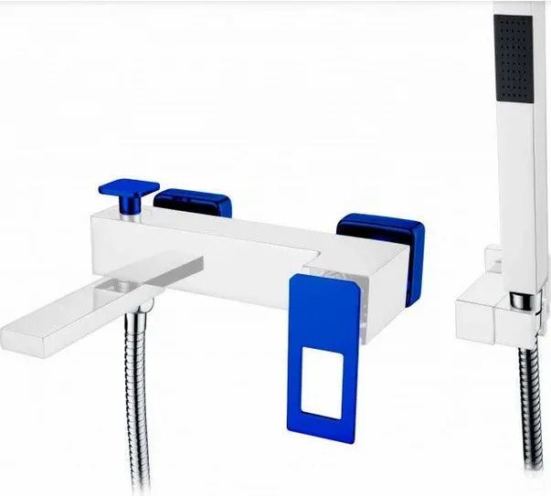 Смеситель для ванны и душа Boheme Q, с душевым гарнитуром, цвет белый/синий, 143-WUW Матеиал: ... Подробнее