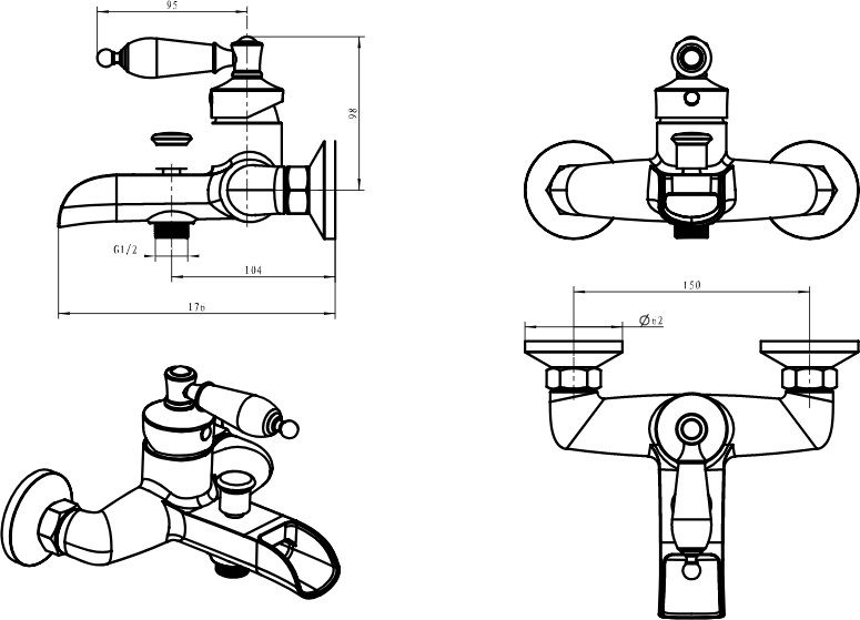 Смеситель Boheme Vogue 203 для ванны с душем важнейший предмет сантехники в любой ванной комнате. Смеситель Boheme Vogue дополнит вашу ванну комфортом и уютом. Благодаря удобной конструкции однорычажных моделей, процесс регулировки температуры воды и интенсивность струи можно произвести одной рукой без особых усилий.Латунь, керамика из которой произведен смеситель Boheme Vogue 203 отличается высокой прочностью и произведена без использования вредных компонентов. Излив смесителя Boheme 203 длиной 17.6 см обеспечит идеальное и комфортное использовании при принятии водных процедур. Излив Boheme Vogue так же оснащен функцией вращения, что значительно упростит использование смесителя. Конструкция модели Boheme Vogue позволяет бесподобно установить смеситель на стену. Смеситель для ванны Boheme 203 выполнен в стиле ретро, что восхитительно прослеживается в его форме. Родина бренда Boheme – Италия, все смесители произведены с высокой точностью и грамотностью технологического процесса. Смеситель Boheme Vogue 203 для ванны с душем принесет комфорт, как в компактную ванную комнату, так и в большой санузел.
