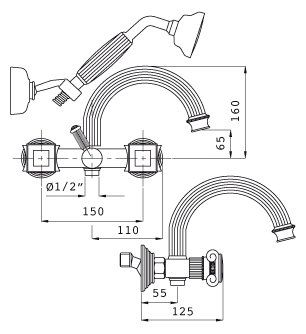 Смеситель для ванны и душа Cezares APHRODITE-V-01-O