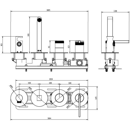 Смеситель для ванны настенный 4 отверстия DQ Bonn браш.роз.золото (DA1704833) купить