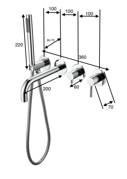 Смеситель для ванны с ручным душем Grocenberg GB5070BL Чёрный матовый