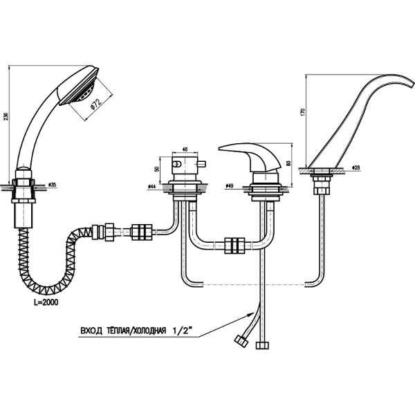 Смеситель на борт ванны Rav Slezak Dunaj D461.5P хром