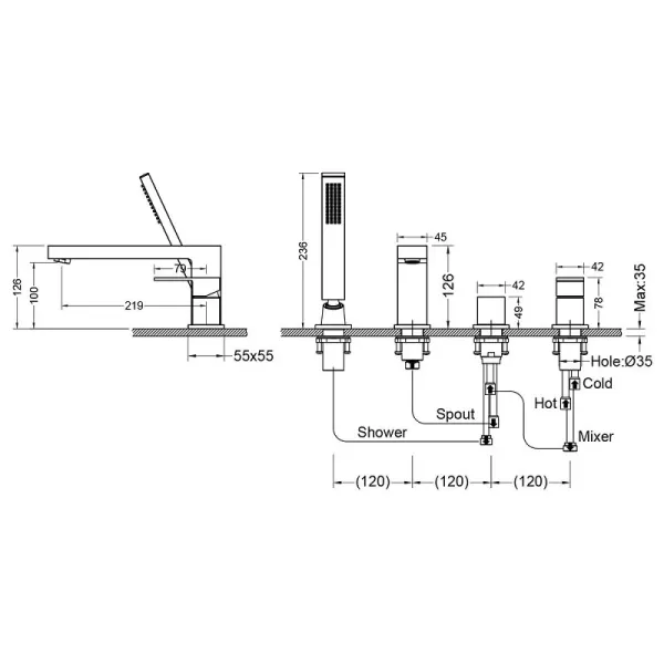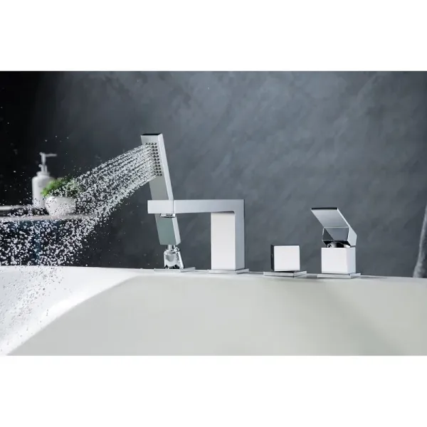 Врезной смеситель придаст ванной комнате оригинальности, благодаря тому, что  шланг ручной лейки и все соединения скрыты.