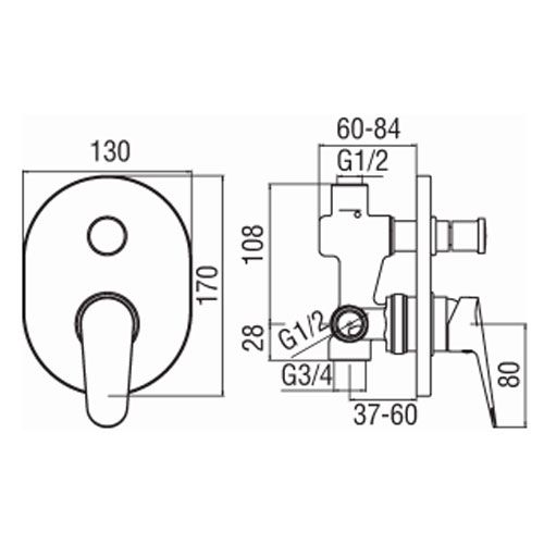 Встроенный однорычажный смеситель на 2 положения