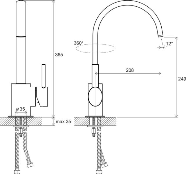 - Высота смесителя:36.5