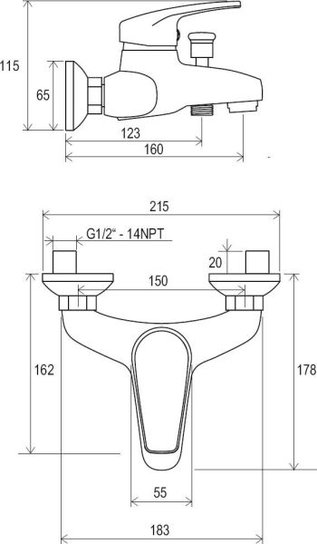 - межосевой размер смесителя : 150 мм