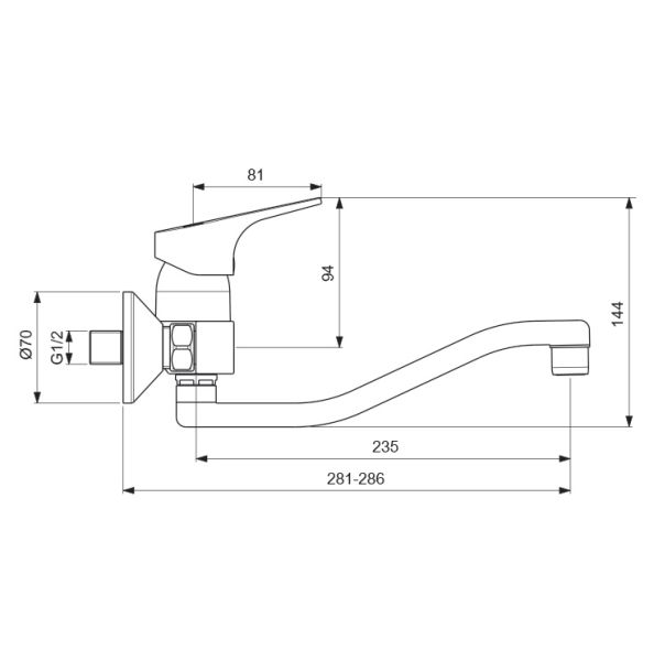 Расстояние от стены до аэратора, мм: 281-286