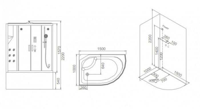 SSWW BU103B R Душевая кабина 1500X1000X2250