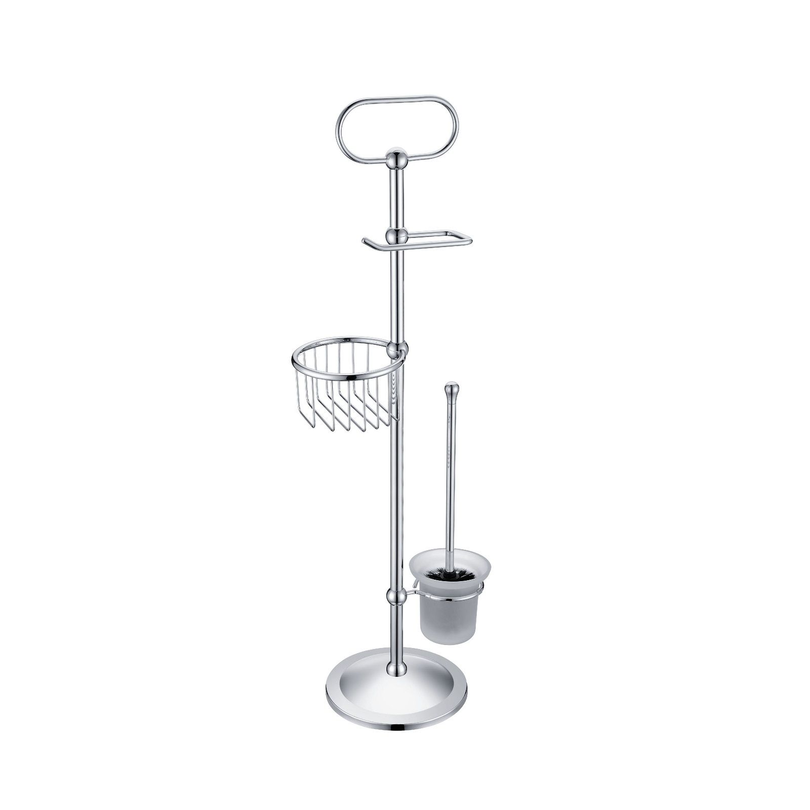 Стойка для туалета Timo Nelson - многофункциональный аксессуар. Представленная модель позволит разумно разместить важные предметы и при этом ничего не крепить на стены. Необходимые аксессуары здесь установлены на напольной комбинированной штанге высотой 859 мм с помощью поворотных креплений. Для изготовления стойки, предназначенной для туалета, использованы: Латунь, Стекло. Все элементы расположены эргономично и компактно. При всех достоинствах изделия стоимость его разумна. Производитель стойки Timo установил на нее гарантию 5 лет.