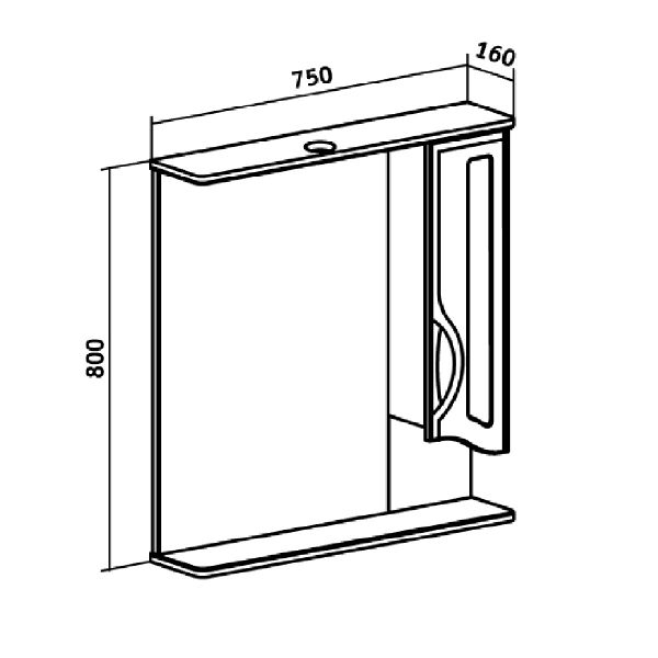 Зеркальный шкаф Runo правый Толедо 75 (00000001041)