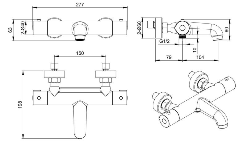 • двухрычажная система регулировки силы струи и температуры воды