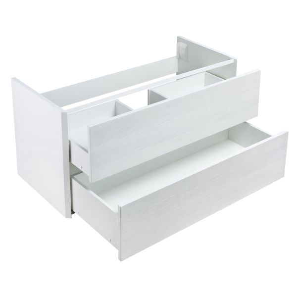 Тумба для комплекта Акватон Брук 100 дуб Латте прекрасно впишется в дизайн любой ванной комнаты, будь то компактная ванная в многоэтажном доме или большой санузел в загородном коттедже. Подвесной способ установки дает возможность не только визуально увеличить пространство, но и обеспечивает быстрый и удобный доступ для уборки.Компания Акватон использует при производстве высококачественные водоотталкивающие материалы (ДСП), соответствующие всем необходимым требованиям безопасности. Коллекция Брук выполнена в эксклюзивном дизайнерском решении в лучших традициях современного стиля. Белый, основной цвет исполнения Акватон Брук, отлично подходящий большинству дизайнерских решений. Тумба под раковину предусматривает удобную и вместительную систему хранения, состоящую из ящиков с системой нажимного открывания. Качественные доводчики позволяют обеспечить мягкое и тихое закрывание. Важные габариты изделия: ширина 99.6 см, глубина 44.3 см, высота 50 см.Россия родина бренда Акватон, вся продукция производится со строгим соблюдением всех стандартов, благодаря чему можно быть абсолютно уверенным в надежности и высоком качестве. Тумба для комплекта Акватон Брук 100 дуб Латте создаст уют и комфорт в любом дизайнерском решении, и ванная комната обретет неповторимый элемент интерьера.