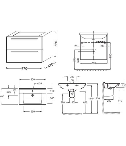 Тумба под раковину Jacob Delafon STRUKTURA EB1277-E16Мебель для раковины-столешницы с 2 ящиками, 77 см, ореховое дерево