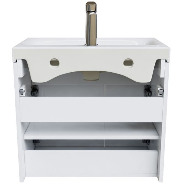 Тумба с раковиной Iddis Zodiac 60 ZOD6CD0i95K подвесная.Фасад и боковины изготовлены из ЛДСП, покрыты несколькими слоями белоснежной эмали. Такое качественное исполнение обеспечит долгий срок службы мебели во влажном помещении ванной (при соблюдении рекомендаций по уходу).Керамический умывальник с высоким бортом и большой вместительной чашей в комплекте. Удобен для гигиенических и хозяйственных нужд.Дверцы скрывают две вместительные полки. Дверцы имеют интегрированные ручки и механизм плавного доведения и закрываются плавно и бесшумно. Фурнитура рассчитана на 30 000 открываний, что составляет более 10 лет исправной работы.Характеристики:Цвет: белый.