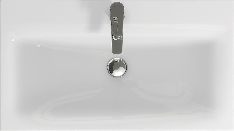 Стильная раковина лаконичной прямоугольной формы шириной 80 см подходит для установки на столешницу. Гармонично сочетается с тумбами для санузлов.