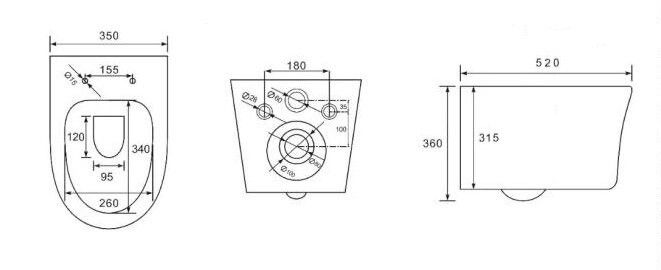 - Укороченный унитаз:нет