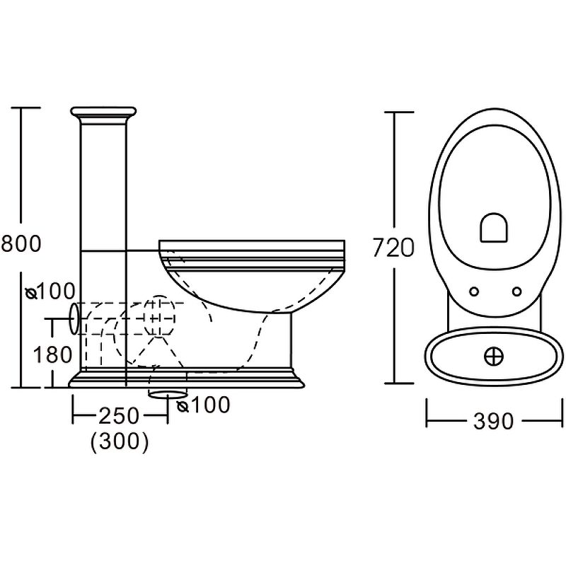 Габариты унитаза (ШхВхД): 39х80х72 см.