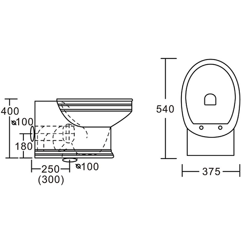 • Прилегание унитаза к стене: